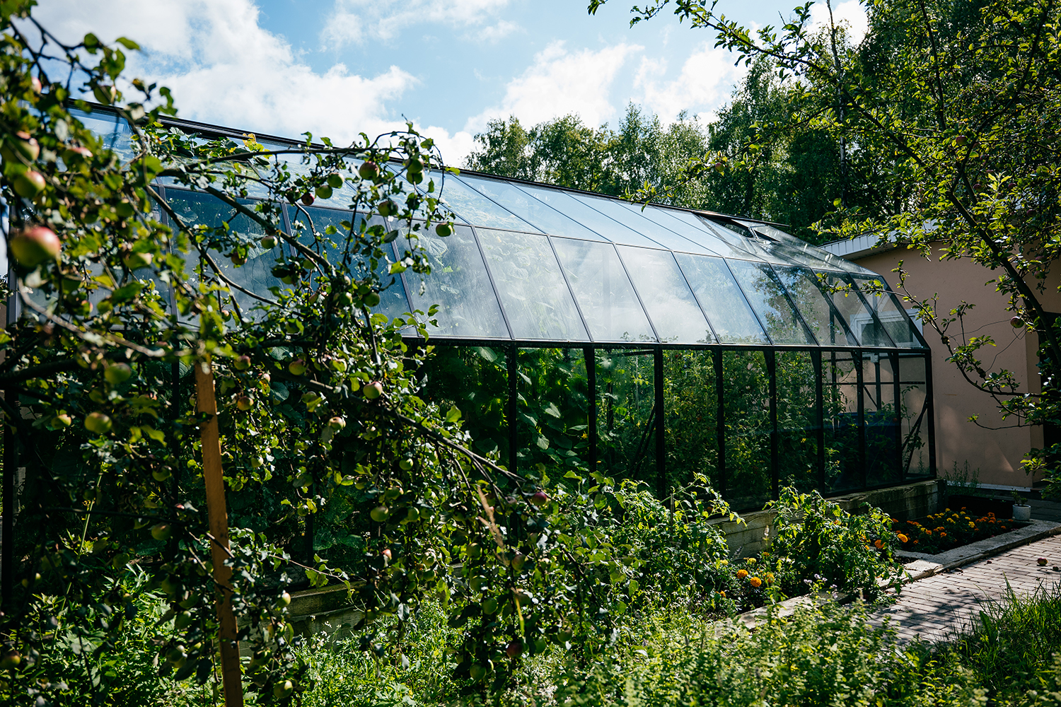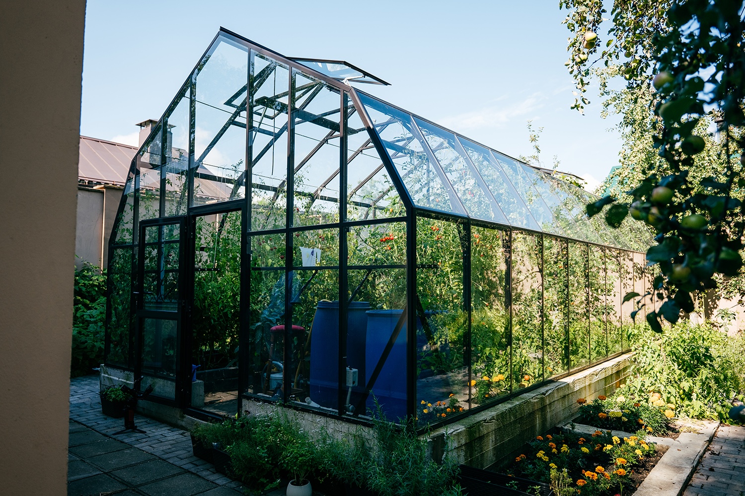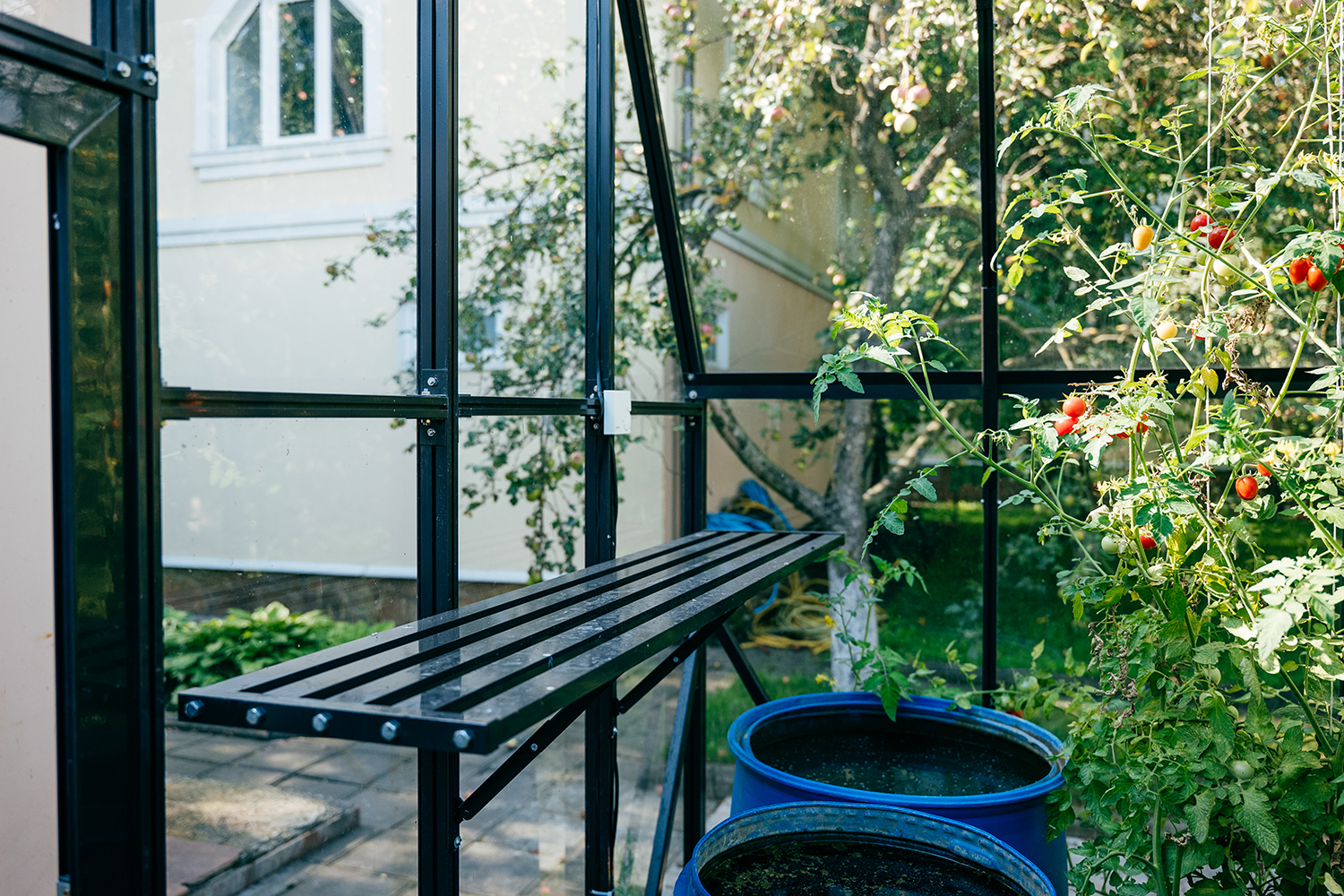 Продуманное зонирование формирует внутри два независимых пространства с разным микроклиматом. Такое решение расширяет возможности выращивания, позволяя комфортно размещать культуры с различными требованиями и повышая эффективность использования всей площади.